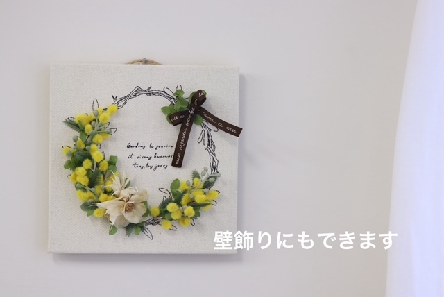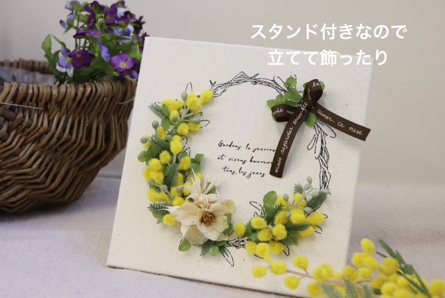 ①ミモザのキャンバスボードアレンジ